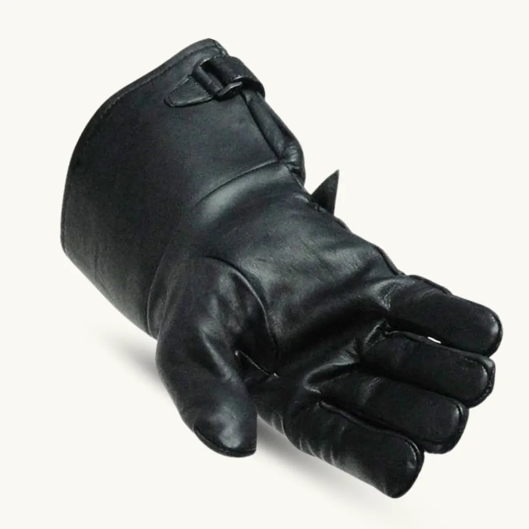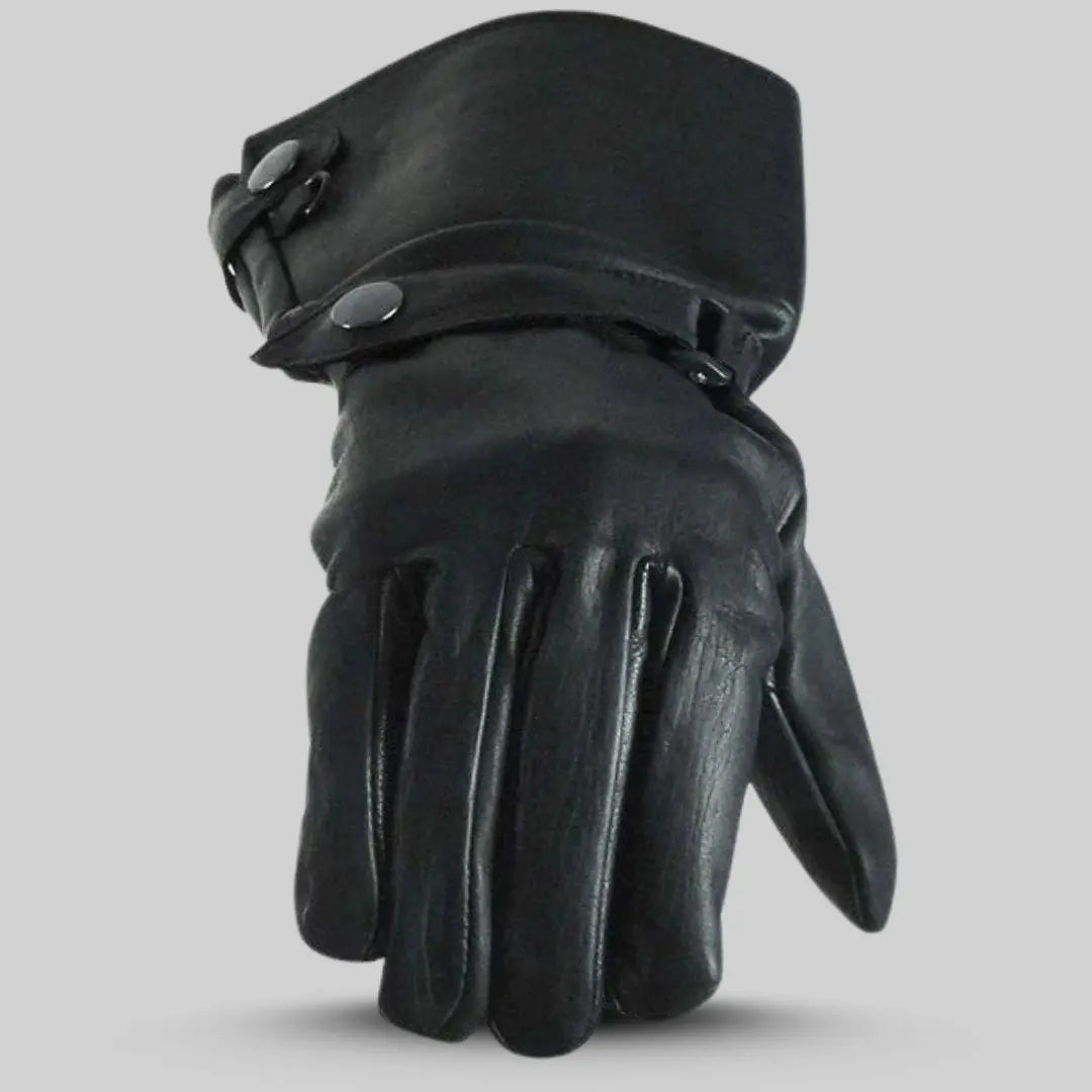 GL2064 Mens Black Lined Biker Leather Motorcycle Gauntlet Gloves Insulated & Classic
